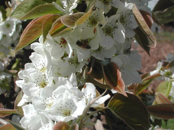 Asian pear blossoms and a bee!