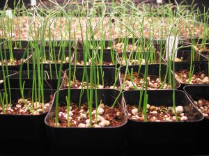 Even if it does snow and the nighttime temperatures drop below 20 degrees (predicted for Friday and Saturday night), there is a warm place in the basement for all the new seeds to start sprouting. In the last three weeks, I have started all the onions, leeks, kale, cabbage, broccoli, kohlrabi (a new attempt, after a failed one four or so years back), endive, escarole, garden sorrel (new this year), and some perenial herbs (thyme, sage, and oregano). A few more things will get started this week. I added a four flat heat mat to my collection of seed starting equipment, along with some heat mat thermometers, to keep the soil temperature close to ideal for germination. I now have room for twelve flats to germinate on heat mats and twenty flats to be under lights (possibly soon to be twentyfour). I am still dreaming of that greenhouse for all my seed starting.