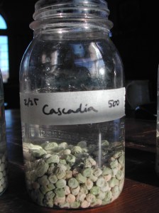Cascadia snap pea seeds, soaked a day, and ready to plant