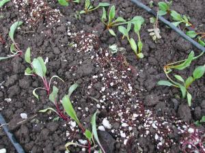 Since I’m not crazy about thinning, I thought I would give this a try. We’ll see how it works. I am hoping they will size up a little faster, since I gave them more space than I usually did with direct seeding and thinning. Unfortunately, I did not start enough, so I still had to seed part of the bed. But, it won’t be so much thinning this time.