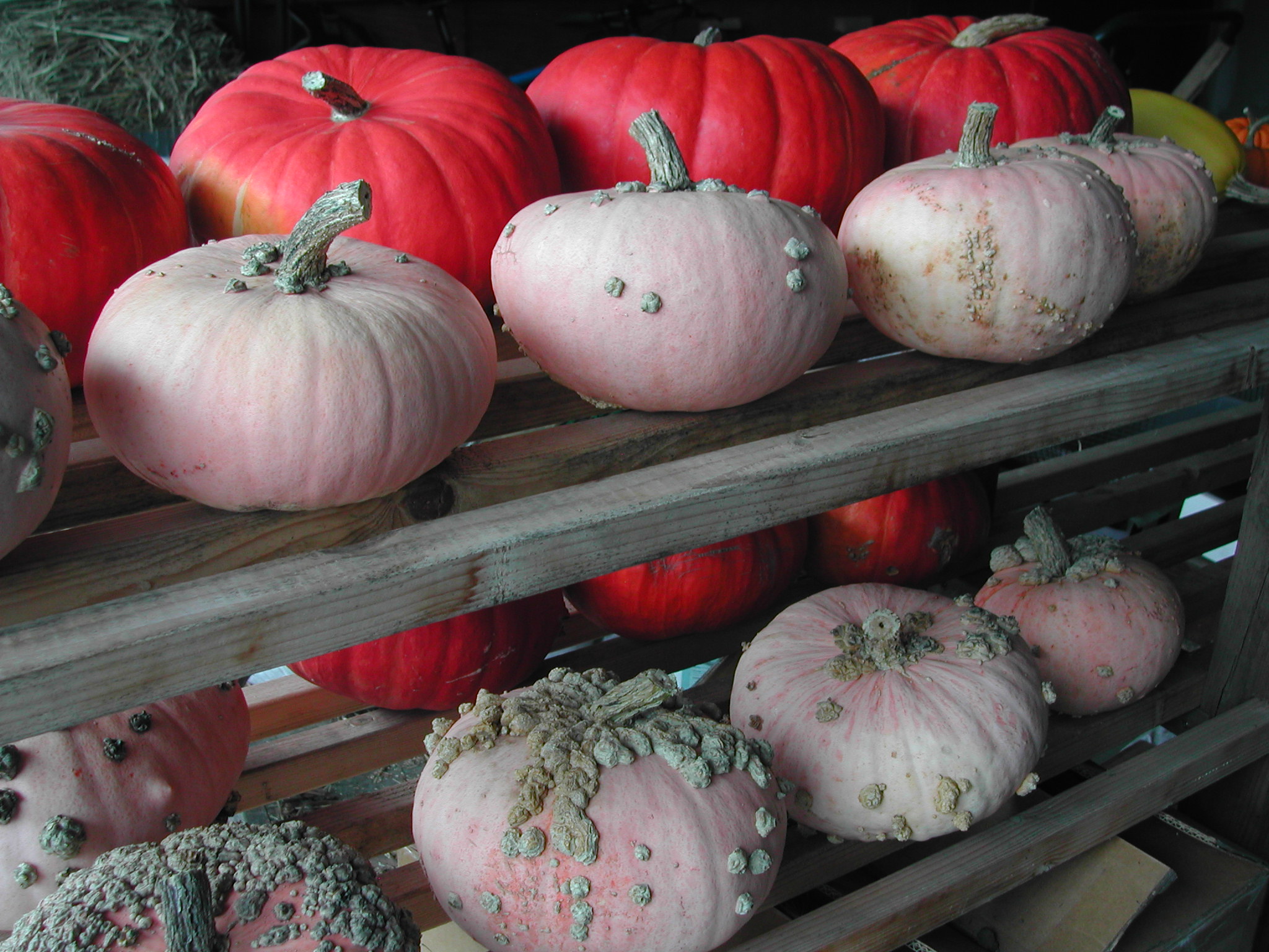 Cleaning up the garlic gave me some table space to start bringing in the winter squash, as it ripens up. I have brought in all the Rogue vif d’Etampes, Galeux d’Eysines and miniature pumpkins. Since we don’t have any forecasts for frost yet and some of the vines are still kicking, I’ll leave the other squash out a bit longer. It is good to know I have a space for them when I need to bring them in.