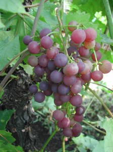 or the birds will get them first. I did see a flock of birds in the vines a week or so ago. I ran out to scare them away and haven’t seen any back since. They may have just realized the grapes aren’t ripe yet. I may be covering those vines with netting to try to keep them out. The rest of our grapes are seeded varieties, which ripen in October and November (Buffalo, Steuben, Concord and Niagra). I need to do more pruning to see how they look this year.