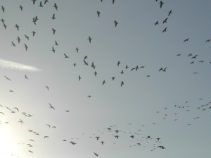 One of the things I love about fall on Sauvie Island is the return of the geese. They are back in full force now. On Tuesday, a flock of geese landed in the field across the road from our place and stayed to eat and rest a bit. Even though they can make a lot of noise, especially when they fly away, they give me a sense of calm. I guess it is seeing the nature do its thing…whatever else is going on just doesn’t seem to matter as much. I am glad they didn’t land in our garden though, because I think they would have eaten everything up! Not that I want them to eat another farmer’s field, but in this case, the crop was out and it was just stubble left in the field. There was no crop to spoil, just geese to watch on a beautiful autumn day.