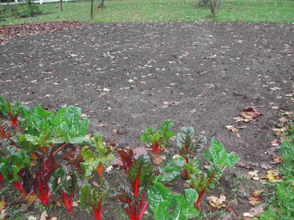 The tomatoes have been cleared and cover crop planted. The chard will stay for the winter…for either the new owners or deer to eat!