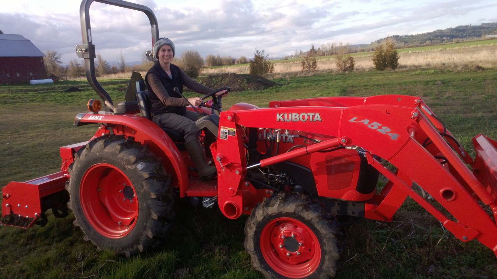 After sorting through the information I gathered and talking with a few other farmers, we decided on a hydrostatic Kubota L3800 with agricultural tires, that came with a front loader. We bought a few implements to go with it: a Woods Brushbull BB600X rotary cutter (mower), a Rankin R3-60 Ripper (sub soiler), and a Woods TC60KOC rotary tiller. We also bought a pair of Rankin Clamp-On Bucket Forks, after getting some deliveries that we realized would be a lot easier to move around the farm with a tractor.