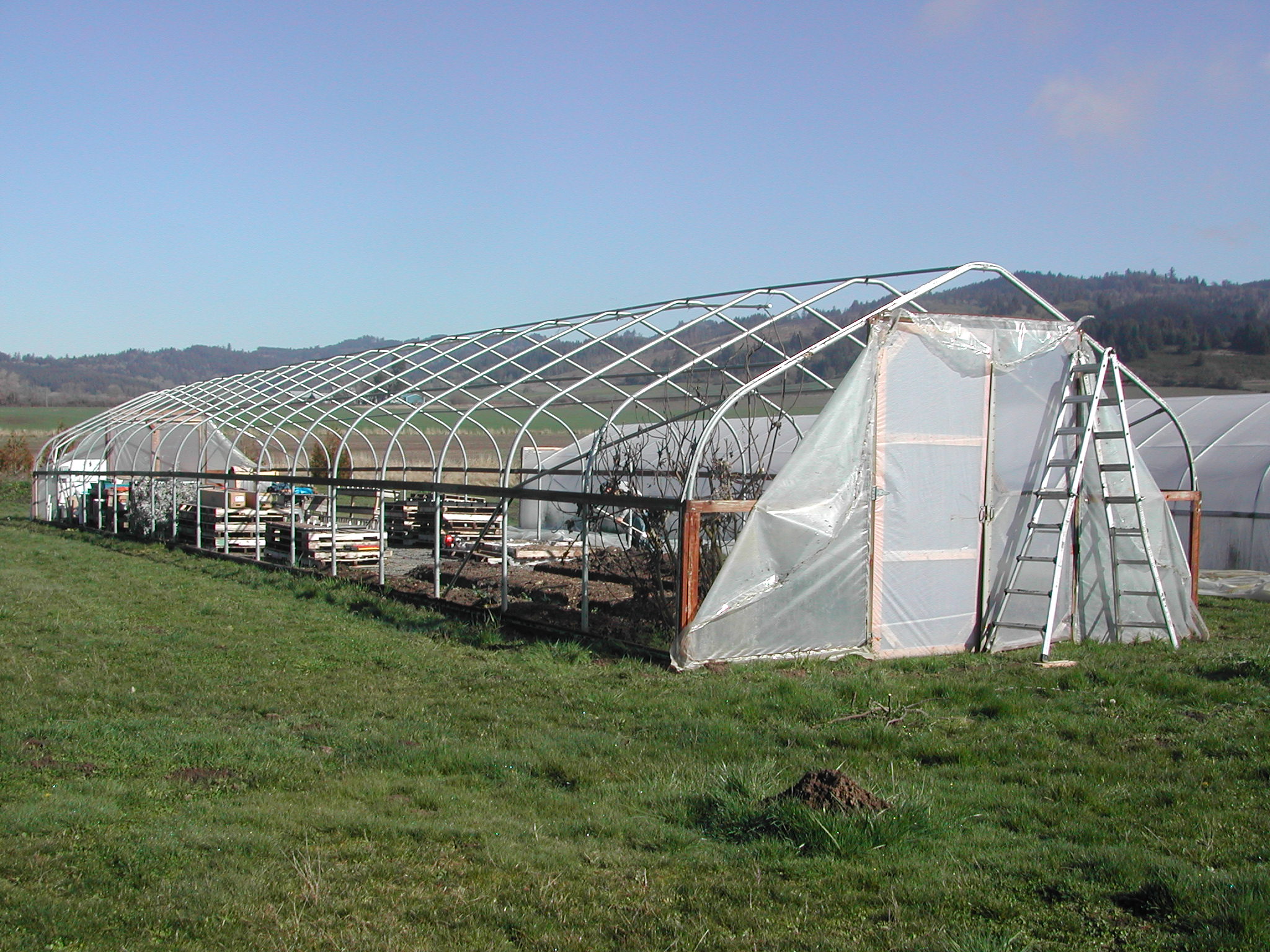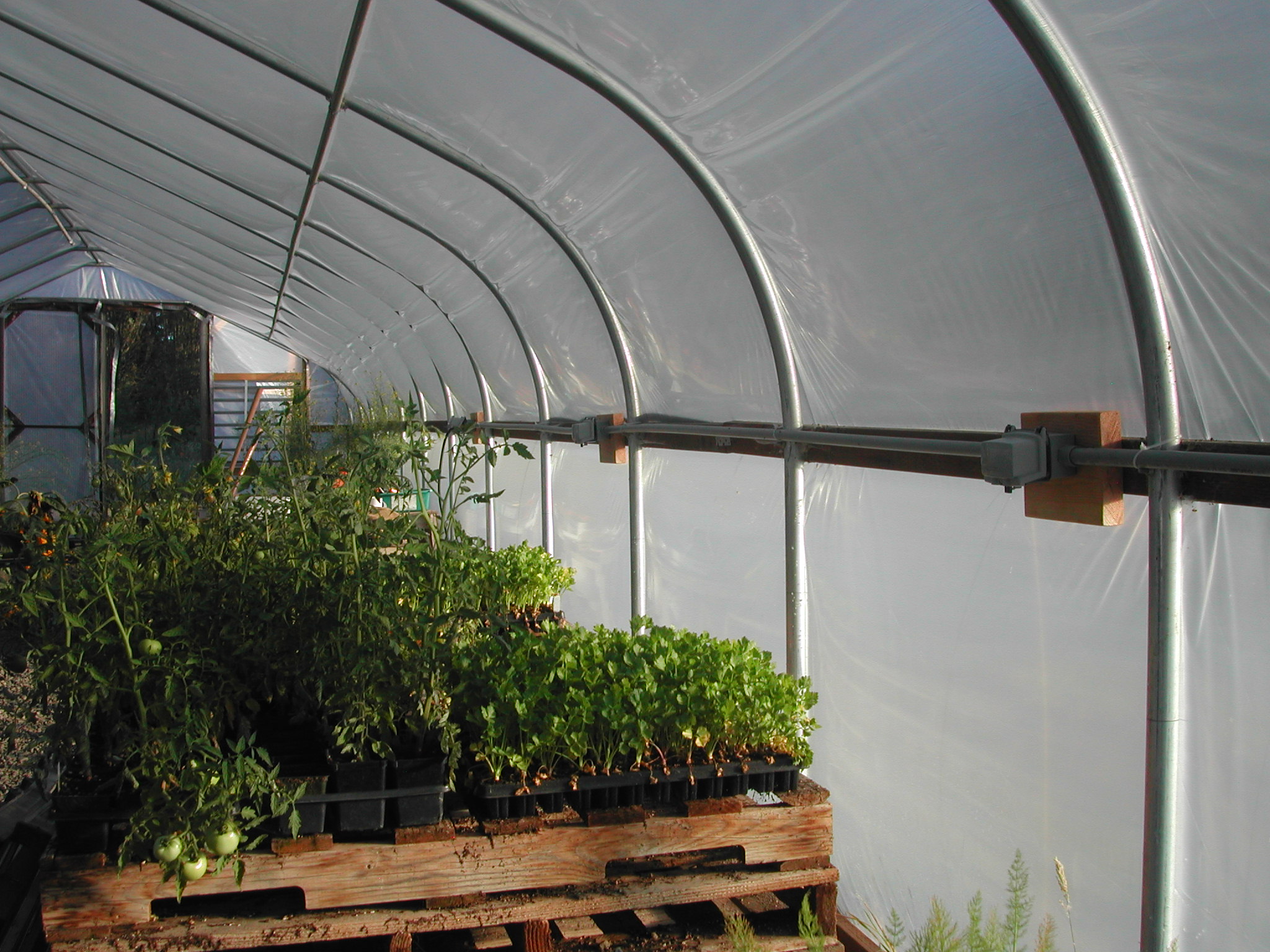 Last week, my parents came to visit and help us with a project, and just in time for this heat. My dad volunteered to help us with wiring in an exhaust fan and vents for our propagation hoop house. Since February, Steven and I have been working on upgrading one of the hoop houses into a propagation house and temporary packing area. First, we took off the old plastic and put on a new double layer, with a fan to put air between the layers, for a little extra insulation during the cold months. Then, over the course of the next few months, Steven framed in a new 36 inch exhaust fan and two 36 inch intake vents, to help cool the temperatures on those sunny days. We set up the packing area, adding gravel to level the ground and making small repairs. Everything was looking good, but I knew the hot weather was coming and those hoop houses sure can heat up. We put up a shade cloth over the propagation hoop house, which made a significant difference in the temperatures inside. Then, Steven took a week off work to help my dad wire in the fan and vents and put in electrical outlets along the length of the hoop house. Just in time. That hoop house is still hot, but I can’t say how much hotter it would be without the ventilation. Thanks, Dad!