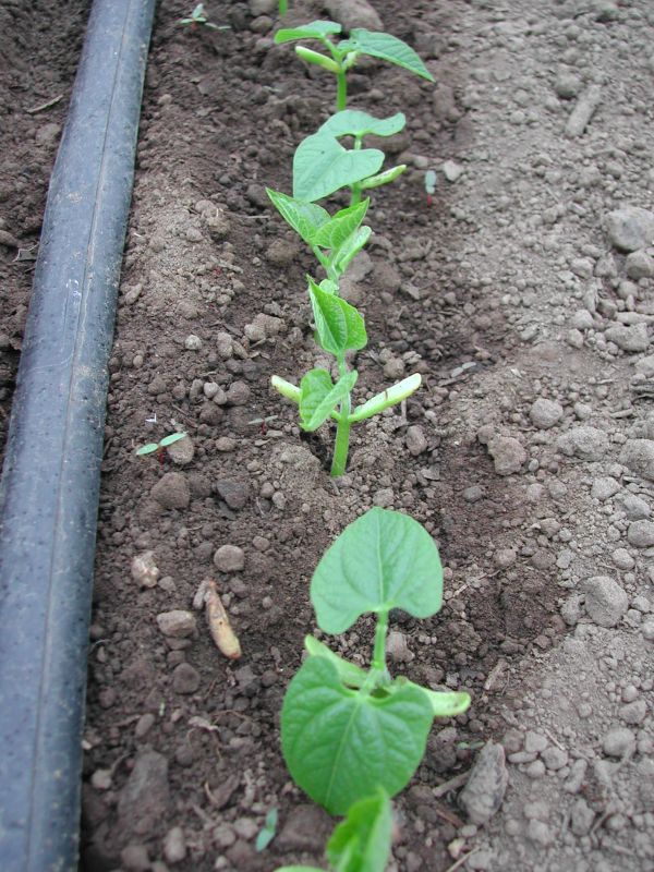 The rest of the tomatoes varieties I have grown before: Stupice, Jaune Flamme, Green Zebra, Striped German, Persimmon, Lena, Rose de Berne and Galina Cherry. The Stupice are doing great, but again, several of the others are suffering from Blossom End Rot, the Jaune Flamme and Rose de Berne, especially. Blossom End rot is caused by a calcium deficiency. Either inconsistant watering or a low pH can be the culprit that makes the calcium unavailable to the plant. In this case, I think it is the pH. I didn’t test the soil this year, but when I first planted this field last year, it had a low pH, because it had blue berries in it previously, which like a low pH. I added lime, both last year and this, but evidently the pH hasn’t gone up enough.